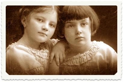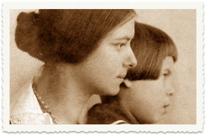 16. משמאל: עכסה בת ישראל בלקינד עם בת דודתה זהרה וילבוש (בת שושנה ונחום). ישראל האב הרבה להעדר מהבית כדי לגייס כספים לבית הספר שהקים עבור יתומים שאסף באירופה, יתומי הפוגרומים בקישנייב ומלחמת העולם הראשונה.