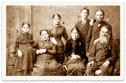 10. תצלום משפחתי של משפחת בלקינד במוגילוב 1882, לפני עלייתם לארץ ישראל. בתמונה: