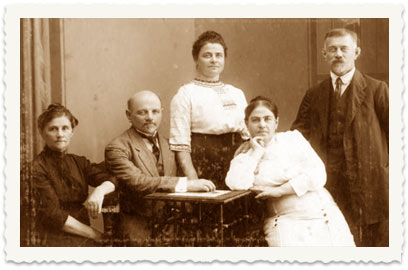 15. 1912 - צילום קבוצתי של בנות ובני משפחת בלקינד לרגל 30 שנה לבואם ארצה. מימין: עומדים שמשון, סוניה, יושבים: אולגה, ישראל ופאני (היתה באבל לאחר מות בעלה).