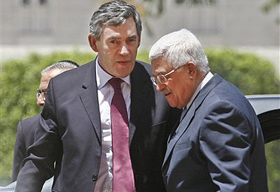 ר"מ בריטניה והנשיא הפלסטיני (צילום: AP)