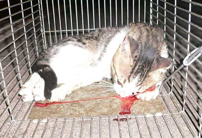 בי"ח רמב"ם: חתול שנלכד בכלוב גסס למוות