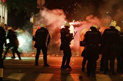עימותים עם כוחות הביטחון הסרבים בבלגרד (צילום: AP)