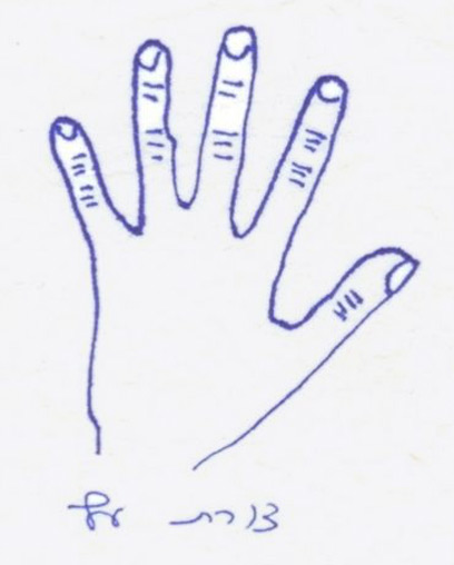 יד הרמונית על פי עקרונות השיטה צריכה להיות חזקה ,נוקשה, העור מעט מבריק והאצבעות כולן באותה איכות יציבה למעט האגודל החזק מכל שאר האצבעות. גם ביד יש חשיבות לפרופורציות ליד ארוכה עדיף שיהיו אצבעות וציפורניים ארוכות ולקצרה אצבעות וציפורניים קצרות. אם כי כף יד גדולה ממוזלת יותר מקטנה. ידיים חזקות ומוצקות עם בשר המרפד היטיב את העצמות הן סמן לכך שאדם מסוגל לעשות כסף. עור רך או חלק מידי מעיד על עצלות. גווני ורוד, אדום או צהוב מעידים על צ'י משגשג לעומת עור אפור ויבש. אגודל חזק מראה על חיים ארוכים לעומת אגודל חלש ורזה ועור רך ודק הנו סימן לבריאות לקויה.