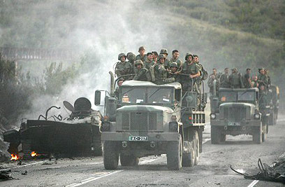 כוחות גאורגים נעים מאזור גורי להגן על הבירה טביליסי (צילום: רויטרס)