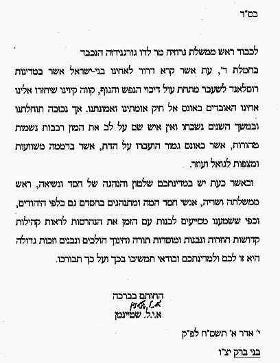 כך, בעקבות בקשתו המיוחדת של גורגנידזה והשאלות האישיות שהגיעו מצד שליחי הארגון, אשר חיכו להוראות של דעת תורה מהארץ כיצד עליהם לנהוג לאור המצב המסוכן שנוצר במדינה, ניגש היום בצהריים הרב ברוק אל מעונו של הרב שטיינמן בבני ברק.