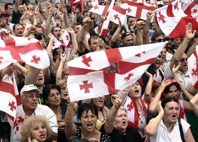יותר מ-150 אלף אזרחים גאורגים התאספו בצהריים בכיכר הגדולה מול בניין הפרלמנט בטביליסי, להפגנת תמיכה בנשיאם. בשנה האחרונה ראתה הכיכר לא מעט הפגנות - מרביתן הפגנות אופוזיציה נגד הנשיא - אולם הפעם, הפגנת הענק מכוונת נגד המעצמה מצפון. ההפגנה הסתיימה באווירה חגגית ובמצעד שהתמשך לאורך רוסטאוולי ולכיכר החירות עם הפסל המוזהב של גיאורגיה.