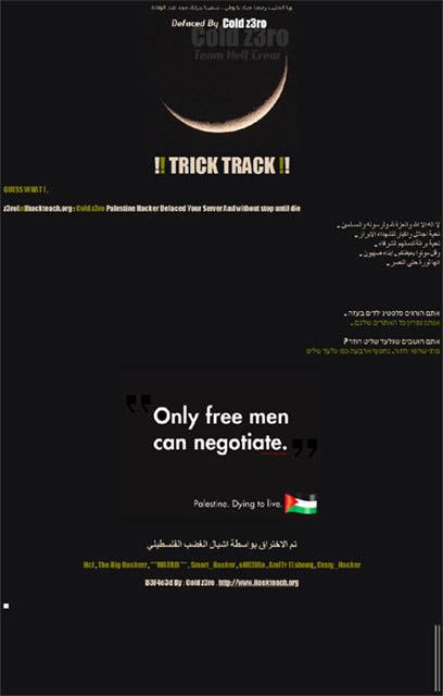 האתר הרשמי המשמש את תנועת הליכוד, likud.org.il, נפרץ הערב בידי האקר בשם Cold Zero מקבוצת ההאקרים המתכנה Team Hell, ומוכרת כקבוצה של האקרים מוסלמים, ככל הנראה פלסטינים.