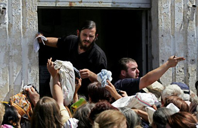 תושבי גורי בתור לקבלת אוכל (צילום: AFP)