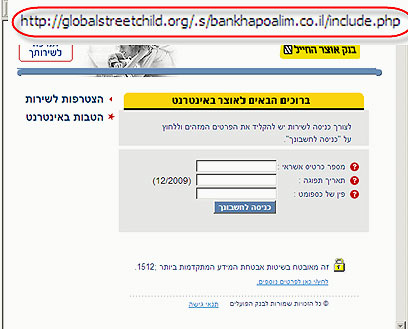 האתר המזוייף. שימו לב שהכתובת היא אינה כתובת אתר הבנק