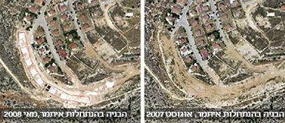 הבנייה באיתמר: השוואה בין 2008 ל-2007 (צילום: שלום עכשיו)