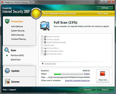 גירסת 2009 של Kaspersky Internet Security היא המקיפה ביותר עד היום, וכוללת את רוב הכלים שמציעות חבילות אבטחה אחרות וכמה חידושים משל עצמה. בדקנו אותה בגירסת ההתנסות, שמגיעה בקובץ התקנה בנפח של 36MB בלבד, ושהותקנה על מחשב הבדיקה שלנו כהרף עין (כארבע דקות כולל כל ההגדרות). עם סיום ההתקנה, התוכנה תפסה שטח דיסק של 27MB בלבד.