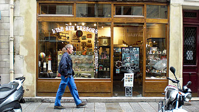 סיריל אנטוני, הבעלים של חנות המשקפיים במספר 70, שמזנון עתיק בצהוב לימוני עומד במרכזה, מספר על חיי השכונה. מתברר שזאת השכונה הכי מקסימה בפריז, עיר בתוך עיר. אני שואלת אותו אם לא מוזר לעבוד כל היום רק עם תיירים, אם אין משהו לא אמיתי בשכונה העתיקה והיקרה הזאת, כמו שוונציה האגדית נראית כמו תפאורת קרטון מהוהה שנבנתה כדי לענג את התיירים.