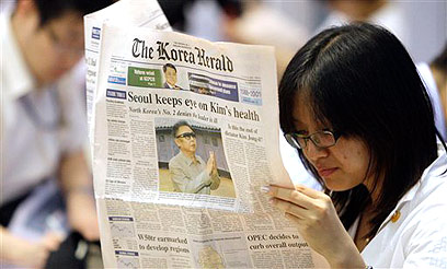 מי ראה את קים ג'ונג איל? אשה קוראת עיתון דרום קוריאני (צילום: AP)