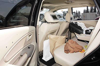 כסא התינוק ברכבו של כהן, בו ישב בנו בן החודשיים (צילום: עידו ארז)