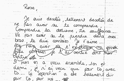 במקביל, כתבה האם מארי מתא המעצר לבתה מכתב בצרפתית, בו מחיקות רבות ושגיאות כתיב. "רוז, אני מצטערת, כל-כך מצטערת שלא השכלתי להבין אותך. להבין את את הסבל שלך, את הכאב שלך. שלא ידעתי לקחת אותך בזרועותיי ולומר לך כמה אני אוהבת אותך. היא כתבה ומחקה: "שלא ידעתי איך להסביר לך כמה, בתי הגדולה, כמה הרגשתי אותך בבית".