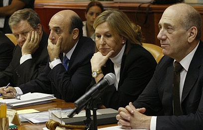 אולמרט, לבני, מופז ושטרית בדיון בממשלה (צילום: AFP)