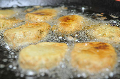 חשוב לטגן בכמה מחזורים כדי לשמור על חום השמן (צילום: ירון ברנר)