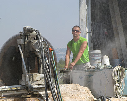 מכונת החיתוך בעבודה מאומצת (צילום: שגיא קופר)