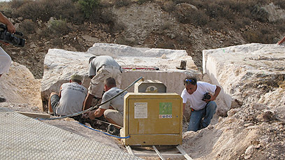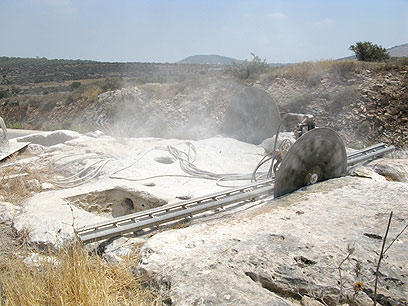 "סליחה, על מה אתה מדבר?" שאל. אחרי שני טלפונים נוספים וקצת עבודת שכנוע, מצאנו את עצמנו בשבע בבוקר עומדים בראש סלע למרגלות הגלבוע, מביטים על משטח חצוב וחמישה-שישה חורים באדמה, מחכים ל"משאית של המנסרים". "את זה", אומר לנו האיש המחויך בחולצה הלבנה, "את זה אני הולך לחתוך החוצה מהסלע, להניף באוויר ולהביא לכברי".
