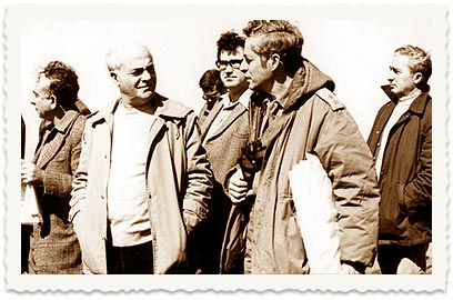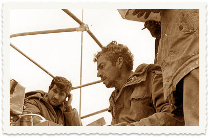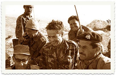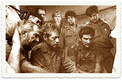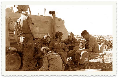 14. אוקטובר 1973, מלחמת יום הכיפורים ברמת הגולן. ליד נגמ"ש פיקוד האוגדה, מימין: דני, ינוש, רפול