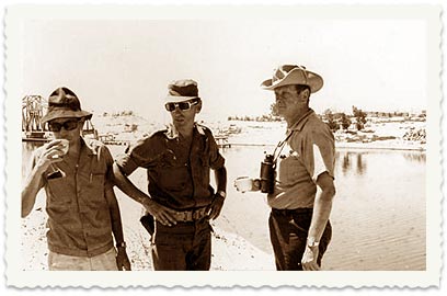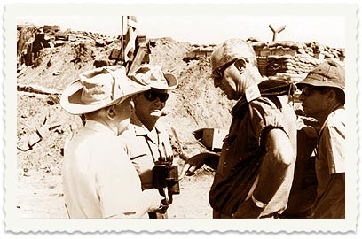 10. סיור על גדות תעלת סואץ ליד גשר הפירדאן, לפני פרוץ מלחמת ההתשה. משמאל: דני, מח"ט 184, יגאל אלון
