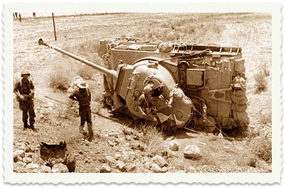 7. מלחמת ששת הימים, טנק שרמן שלנו שהתהפך בוואדי פארעה בדרך לגשר דמיה