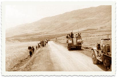 8. ששת הימים, בכניסה לשכם, מפקד האוגדה אלעד פלד, הרמ"ט מוסא פלד, באמצע דני. 8.6.67