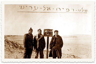 4. דני מימין, נחום שריג באמצע והסייר אבי משמאל. לאחר כיבוש ניצנה, דצמבר 1948