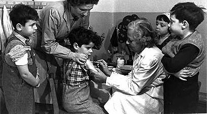היו ימים. תלמידים מקבלים חיסון נגד דיפטריה בבית הספר
