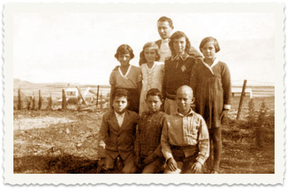 8. בתצלום: יצחק עם אחיו ואחיותיו. מימין: יצחק, דוד, מרים (אמו של אברהם יפה), שרה, רחל (האם), יעקב.