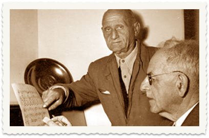 10. דוד בן גוריון באחד מביקוריו אצל חבר נעוריו יצחק כבשנה, שנות ה-50.