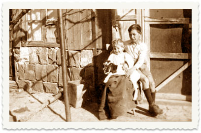 13. בצלאל ויהודה שניידמן בחצר ביתם, 1933.