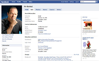 הפייסבוק של ברקת משמש ככלי בחירות פעיל ומשמעותי בקמפיין. לפי עמודו האישי, לברקת יש לא פחות מ-4,639 חברים, אליהם הוא שולח תזכורות לבחור והצעות להתנדבות השכם והערב. ברקת מספק מידע אישי על עצמו, אך העדיף שלא להתייחס לשאלות כגון: "השקפות דת", ו-"השקפות פוליטיות", ככל הנראה בשביל למנוע סלידה מציבורים מסוימים. הוא חבר בלא פחות מ-15 קבוצות, מתוכן שש מתייחסות אליו באופן ישיר, שבע לעיר ירושלים, וקבוצה אחת שיכולה לסבך אותו עם אוהדי בית"ר: "הפועל קטמון ירושלים".