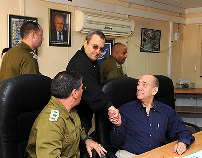 אולמרט, ברק ואשכנזי. ערוכים (צילום: אריאל חרמוני, משרד הביטחון)