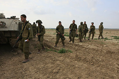 חיילים בגבול עזה, אתמול אחרי התקרית עם המחבלים (צילום: צפריר אביוב)
