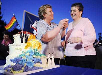 חתונת לסביות טרם אישור הצעה 8 בקליפורניה (צילום ארכיון: רויטרס)