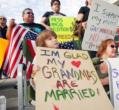 מפגינים למען זכויות גייז בקליפורניה (צילום ארכיון: AP)