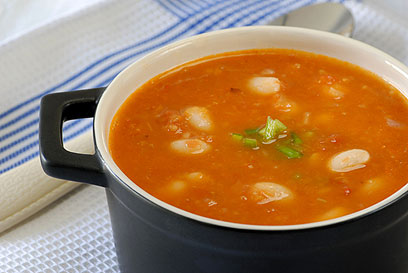 מרק עגבניות צלויות, שעועית לבנה ופלפל חריף