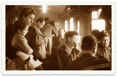 12. צילום בקרון רכבת באנגליה. הגברים היושבים לא מפנים מקום לאמא עם הילד