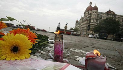 נרות מול מלון "טאג' מאהל" במומבאי, היום (צילום: רויטרס)