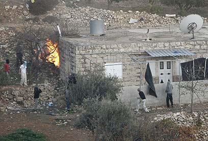 שורפים עץ, מחבלים בבית. מתנחלים סביב הבית הפלסטיני (צילום: AFP)