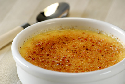 - לקראת ההגשה: זורים כף סוכר חום דמררה על כל קערית קרם, מבלי לפזרו על הדפנות/השוליים. שורפים את הסוכר בעזרת ברנר, עד לקבלת מראה שרוף-קרמלי. מגישים מיד.