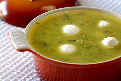 ירוק ומשגע: מרק אפונה, בזיליקום ובייבי מוצרלה