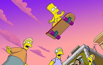 סימפסון הצעיר במסע העירום על גבי הסקייטבורד. גם זה פורנו