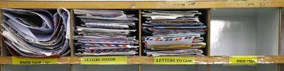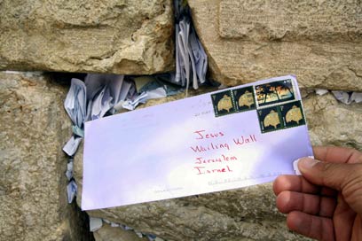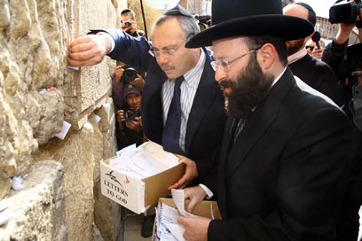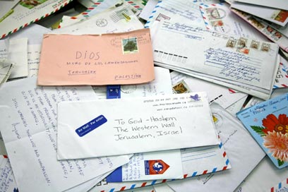 הדואר העביר לכותל את המכתבים לאלוהים: בטקס חגיגי שנערך היום (ג') ברחבת הכותל המערבי, הטמינו רב הכותל והמקומות הקדושים, הרב שמואל רבינוביץ' ומנכ"ל חברת הדואר אבי הוכמן, אלפי מכתבים ששלחו אזרחים מכל העולם לאלוהים. הרב רבינוביץ' התפלל למען השולחים וביקש שתפילתם תיענה.