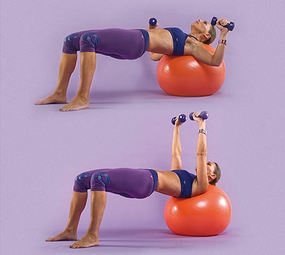 מה תצטרכי: שתי משקולות או בודי בר, פיטבול, כדור אירובי