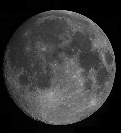 ירח כמעט מלא, כפי שצולם ב-11 בנובמבר בידי אמיר ברנט מהמרכז האסטרונומי ע"ש אילן רמון באוניברסיטת בן-גוריון. התמונה היא תצרף של 80 תמונות שצולמו באמצעות טלסקופ Meade 16 LX200ACF ומצלמת CCD מדגם DSI (צילום: אמיר ברנט)