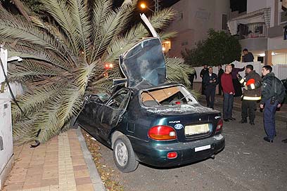 עץ שנפל על רכב בנתניה (צילום: עידו ארז)