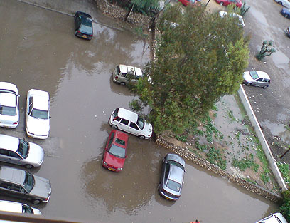 מגרש חנייה מוצף, הבוקר בתל-אביב (צילום: נטע בן-כנען)