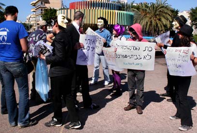עוטים מסכות, לובשים תחפושות. הפגנה של אנונימוס בישראל (צילום: ברק ברודו)